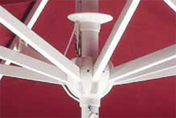 Iseo è un ombrellone ombrellone a palo centrale con struttura in alluminio verniciato bianco/antracite a palo centrale